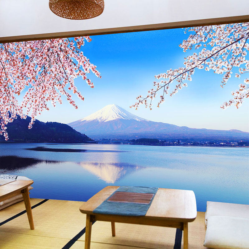 日本櫻花富士山壁紙日式風景壁畫居酒屋日料壽司餐廳裝修壁紙
